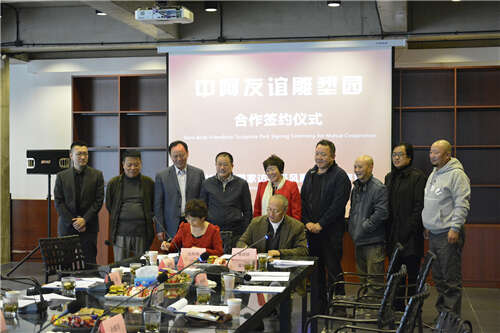 3月19日中阿友谊雕塑园项目合作签约仪式暨阿拉伯雕塑家访华采风雕塑作品评审会议在中国雕塑学会举办。中国美术家协会副主席、中国雕塑学会会长、清华大学美术学院副院长曾成钢,文化部外联局副局长朱琦,银川市人民政府副市长钱秀梅,中国雕塑学会副会长、深圳雕塑院院长孙振华,天津美术学院公共艺术学院院长景育民,清华大学美术学院雕塑系主任董书兵,中国雕塑学会网主编朱尚熹,银川市美术家协会主席、银川美术馆馆长、一级美术师黄智,文化部外联局亚非处副处长孙大林,文化部外联局亚非处项目主管吴曦,中国对外文化集团公司策展部经理马瑞青,银川市文化新闻出版广电局局长刘涛,银川市文化新闻出版广电局调研员冒学礼等近20位专家、领导和嘉宾参加、列席了签约仪式及评审会。