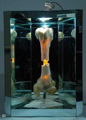 焦:材料创新是其中一个标准但不是唯一的标准,传统的塑造方式和材料运用一样能获奖,如杨洪获得年度奖和一等奖的作品《盆景》以及马力的研究生奖作品《城堡—洞悉》,更重要的是看材料是否能成为作品语言的一部分。高苏使用仿真硅胶材料创作的《膨胀的欲望》是一个例子,这种材料虽然在许多国际国内的展览中已经屡见不鲜,但是他的价值在于:一方面能将这种材料很好地运用到作品的表现中,另一方面,在极其缺乏相应材料技术支持的环境下,能独立探索并掌握这样一种材料表现方式,无疑更加难得。张翔用藤编方式完成的充满哲学意境的作品,也同样令人印象深刻,还有的同学对骨头、纸浆等材料的兴趣,也在展览作品中有着较为充分的呈现。