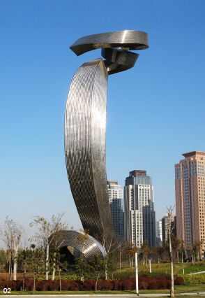 巨型雕塑《如意》,高度达到40米,是郑东新区标志性的雕塑,作者孙伟教授,具有丰富的大尺度公共雕塑设计与制作经验,他根据郑东新区环形城市的规划布局特点,设计出具有典型中国造型语汇,象征美好祝福与祈愿的“万事如意”。在雕塑的造型处理、基础、材料以及肌理等问题上,学会的专家们提出诸多建设性修改意见,孙伟教授本着严谨的学术态度,反复推敲和试验,在加工制作单位的积极配合下,雕塑最终得以顺利完成,并达到了出色的艺术效果。
