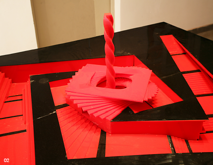 这个展览让我有了新的理解:我们既可以把“景观雕塑”理解为“雕塑化的景观”,也可以看成“景观化的雕塑”,只有这样,我们才能为在雕塑系而不是设计系成立这样一个专业找到一个合乎逻辑的理由;也只有这样,才能很好地把握和设置兼顾设计和前沿艺术的课程关系,才能实现将大地艺术、装置艺术、环保艺术借由功能的设置和引导,真正使公众得以参与的良好愿望。今天这里的展览作品,既是某个概念景观的方案,同时,他们的模型同样是非常具有新意的纯艺术的作品——这点非常令人惊讶!同时也给大家以