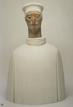 最近我有越来越多的机会在照片或其他书的封面上去观赏舟越桂先生的雕塑。每一次,我都感觉到那种永恒的沉寂。随着一次又一次的观赏,我开始注意到一些其他的东西,那些站在肃然而静止的空气中的雕塑形象似乎在试图说出点什么。无论是紧闭的还是微张的嘴,词语开头的音节好像就盘旋在他们周围。不过,那开头的音节却从未出声。词语在努力向外冒,但却定住或如无声的音一般在那儿摇曳,不是潜伏在唇齿之间,而是神秘地盘旋在每一个雕像的周围。