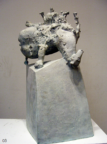 20世纪90年代以后雕塑开始活跃起来,这种活跃遭遇到观念艺术的进入。它从两个方面刺激了雕塑的活跃,一个方面是装置,以现成品为材料的作品开始影响雕塑家的创作,不再仅仅是材料的技艺性的架上的创作,现成物品介入到雕塑当中;还有一个就是关于公共艺术的讨论,随着中国社会的开放,公共艺术和个人创作开始产生密切的联系,怎样把艺术家个人的创作转换为公共艺术。而这两点对学院传统雕塑教学理念产生了冲击。公共性一旦提出,雕塑家就不再是一个独立的主体,必须要考虑和社会、和他人的平等的交流和相互的介入。反之因为装置、环境艺术的出现,雕塑的语言发生了某种变化,作为培养雕塑家的学院面临的挑战和问题开始出现。今天的雕塑应该坚持什么?开放性体现在哪儿?教学应该做怎样的调整?这个展览是一个比较纯粹的雕塑展览,没有太多的装置成分。研究性比较强,学院的气氛比较强。鲁美的作品不少是对人在不同精神状态和心理状态下面的形体上的反映,川美的创作思路放得比较开,个人的差距也比较大。两个学院不太相同的地方,留下了讨论的空间。在中国当下的文化情境里,特别是在市场、商业介入力度越来越大的情境里面,学院的艺术家有一个需要坚守的东西。学院实际上提供了一种保护机制,艺术家能够在某种程度上规避被市场完全控制,能独立地进行创作。艺术的价值是什么,其实就是艺术家作为个体,他的创造力能够得到社会认可。另外一个方面和当代文化情境发生了关系,针对中国当代现实的、文化的、精神的、生态的种种问题,然后通过艺术语言和个人智慧使这些成为呈现在艺术中的问题,成为精神生长的具有开启性的一个环节。