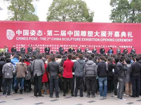 首先由中国雕塑学会会长曾成钢为大展开幕式致辞,随后文化部艺术司美术处处长安远远代表文化部讲话,中国农工民主党中央秘书长陈建国宣读全国政协副主席陈宗兴的贺信,浙江省文联主席许江、中国美术家协会主席刘大为等在开幕式上致辞,中国雕塑学会名誉会长曹春生宣布大展获奖名单。最后由中国美术家协会主席刘大为,副省长、市委书记陈德荣共同为展览剪彩。建设部原副部长宋春华、文化部艺术市场司副司长张新建等全国各地的领导及艺术家共同出席了开幕典礼。