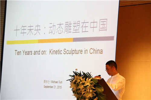 On the afternoon of 21th Sep 2015, artists, scholars and artists worked in the relevant filed hold a seminar with a theme of "background, teaching and practice of china dynamic sculpture", Doc Sun Zhenhua was served as a host for the seminar.  Li Duozhuang, the executive director for China Region of International Dynamic Art Organization. Zhao Jingshan, associate professor of mechanical engineering department ofTsinghuaUniversity. Shi Danqing, professor of Department of Information Art & Design ofTsinghuaUniversity. Chen Hui, associate professor of sculpture department ofAcademyofArtand Design of Tsinghua University. Tangjie, sculptors from sculpture department of LuXun Academy of Fine Arts, Dengyue, professor of the department of arts of Southwest Jiaotong University. They were invited to attend to the seminar. Luo Xiaoping, professor fromcollegeofFine Art,ShanghaiUniversitymade a speech on the current situation of subject, of the instruction and of artistic creation, with audiences and viewers involved in, the atmosphere in the seminar was extremely warm.